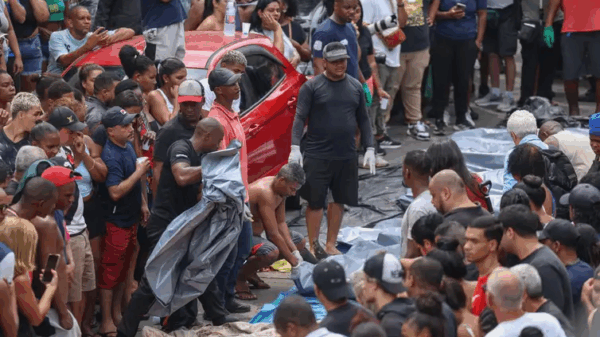 Ativistas que acompanharam a retirada de mais de 60 corpos de uma área de mata no Complexo do Penha, um dia após a maior operação policial realizada no...