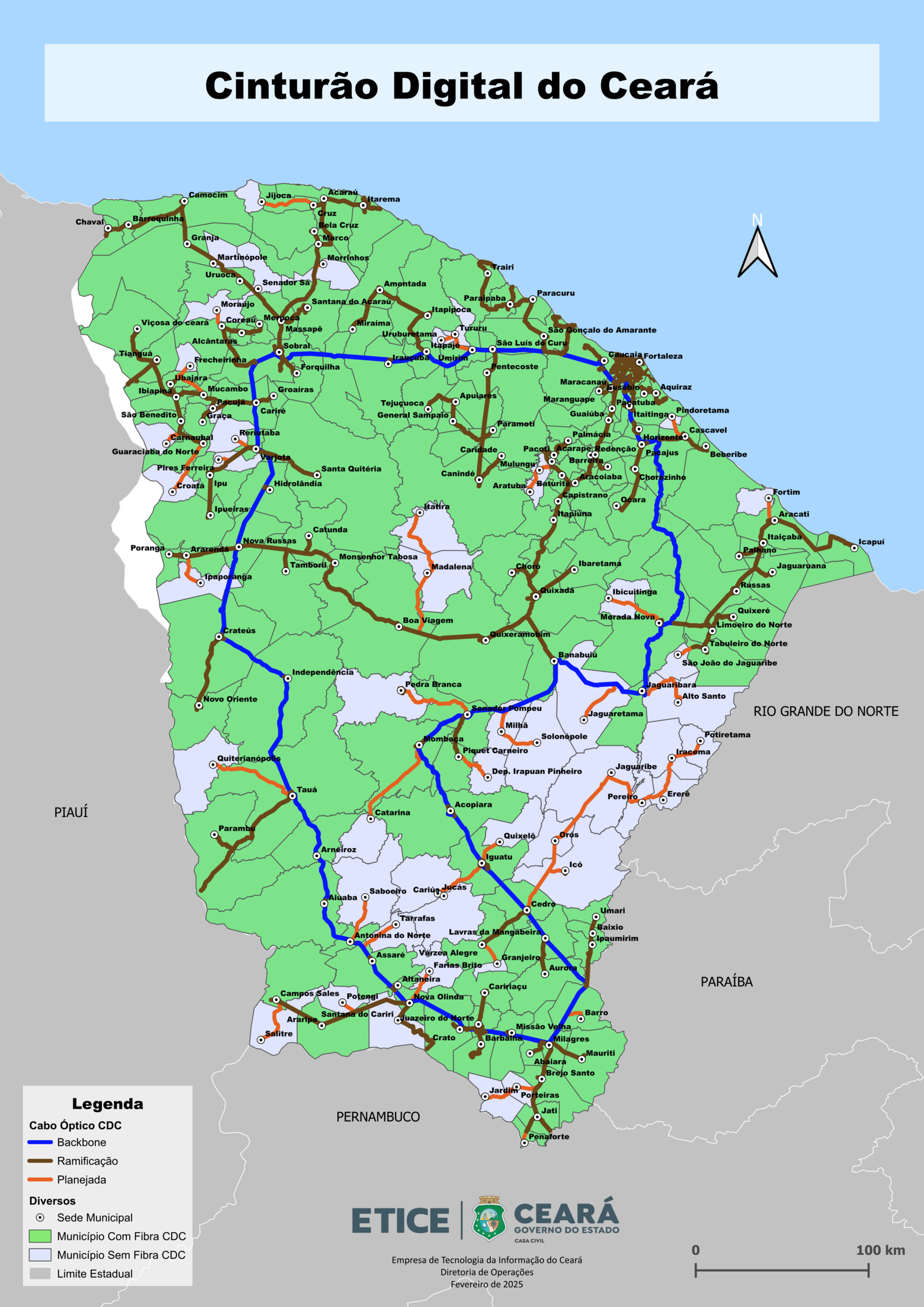 Em 2026, o Cinturão Digital atingirá o dobro da atual velocidade de transmissão de dados de 200 Gbps para 400 Gbps. Fortaleza é hoje o segundo maior ponto de troca de tráfego de internet do Brasil, pioneirismo que começou no ano 2000.